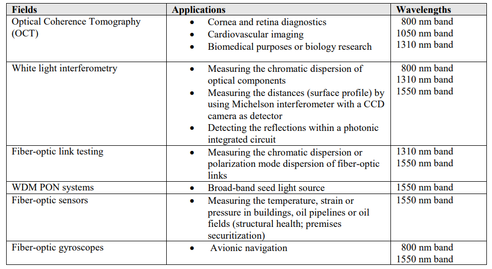 Table 1 Applications of SLDs Fields Applications Wavelengths Optical Coherence Tomography (OCT)